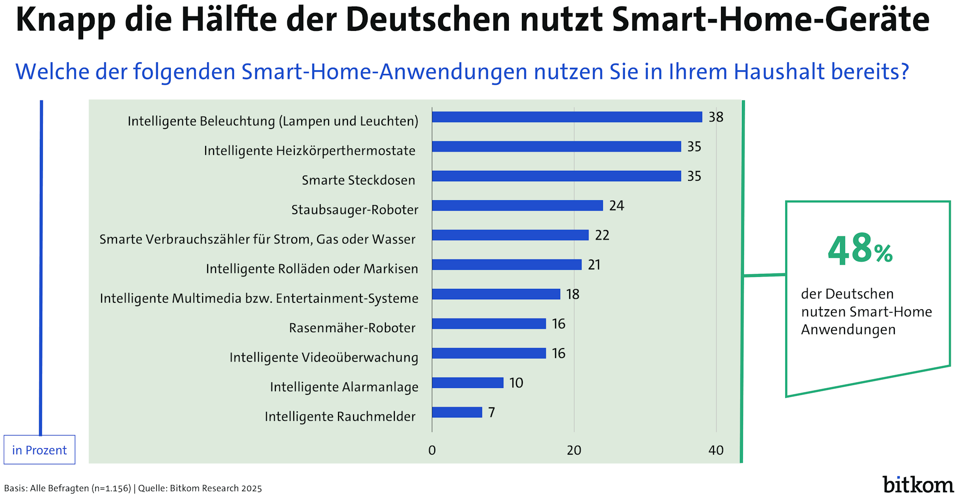 Knapp die Hälfte der Deutschen nutzt Smart-Home-Geräte (Quelle. Bitkom)