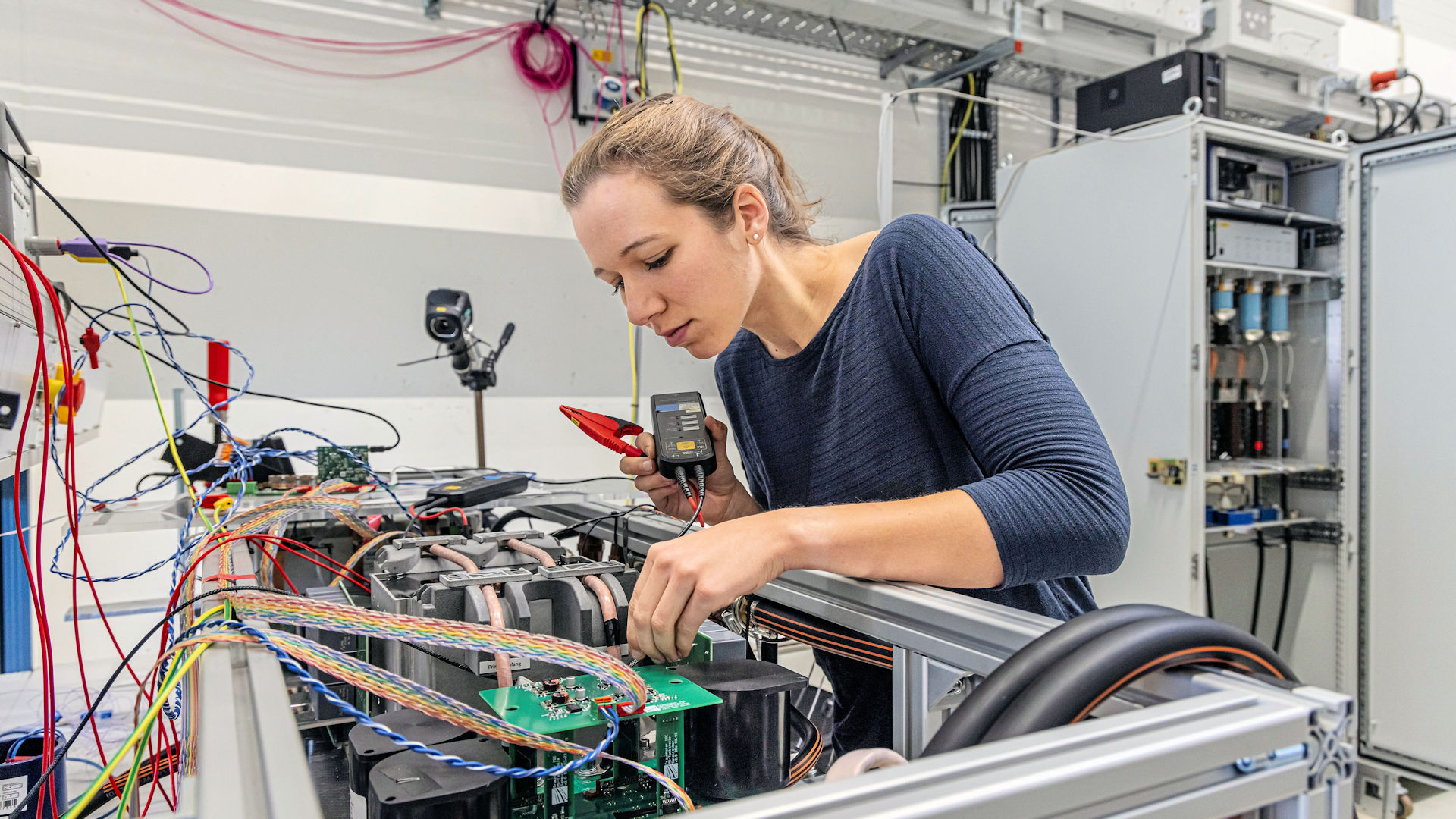 Die am Fraunhofer ISE entwickelt Mittelspannungs-Systemtechnik für zukünftige Schnellladestationen ermöglicht Spitzenlasten von mehreren Megawatt bei geringem Ressourcenverbrauch und hoher Flexibilität. (Quelle: Fraunhofer ISE)