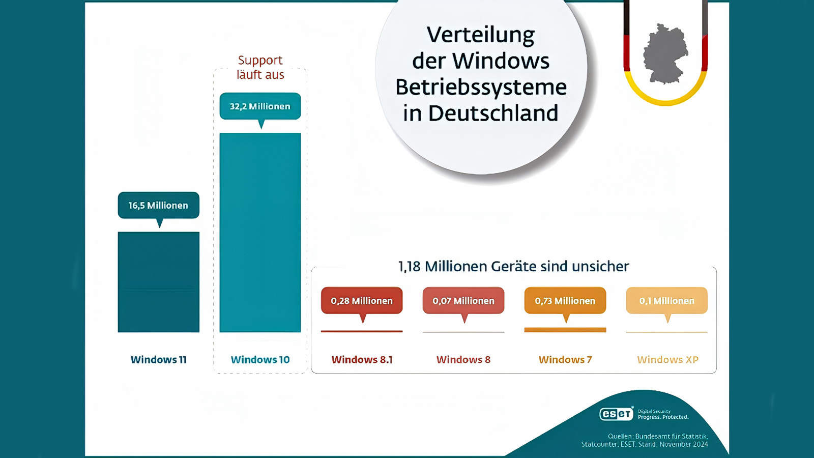 Windows 10 ist immer noch das beliebteste Betriebssystem der Deutschen (Quelle: ESET)