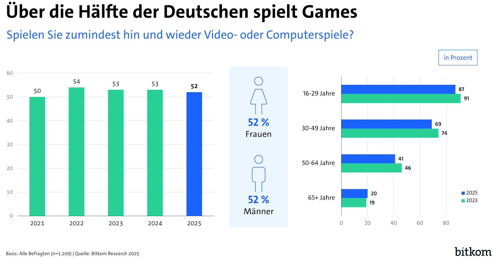 Über die Hälfte der Deutschen spielt Games. (Quelle. Bitkom)
