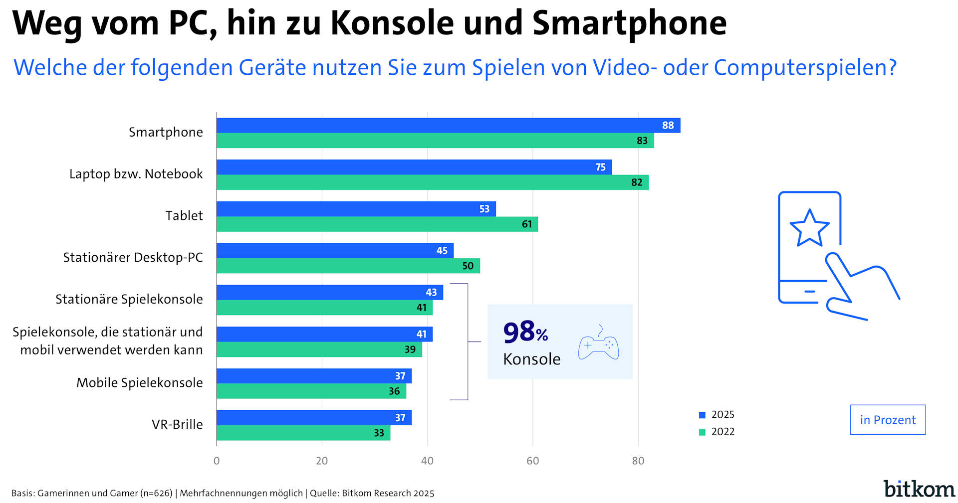 Weg vom PC, hin zu Konsole und Smartphone. (Quelle. Bitkom)