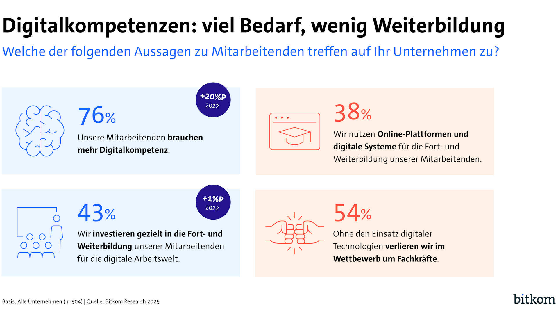 Digitalkompetenzen: viel Bedarf, wenig Weiterbildung. (Quelle: Bitkom)