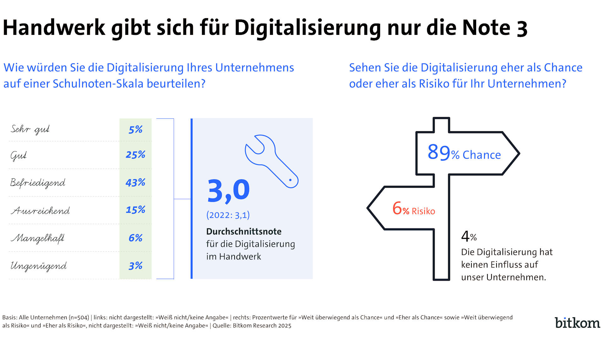 Handwerk gibt sich für Digitalisierung nur Note 3. (Quelle: Bitkom)