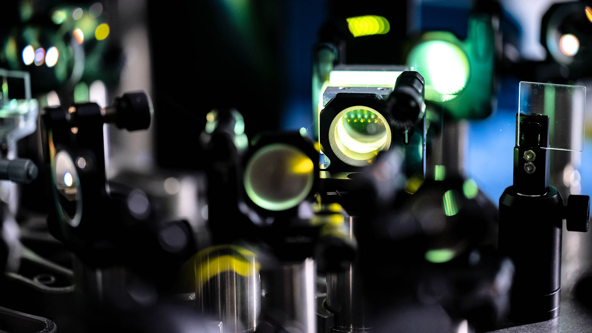 Komplexe Versuchsaufbauten ermöglichen es, die extrem schnellen Bewegungen von Elektronen in Festkörpern mit Laserpulsen in hoher zeitlicher Auflösung untersuchen. (Quelle: Universität Oldenburg/Marcus Windus)