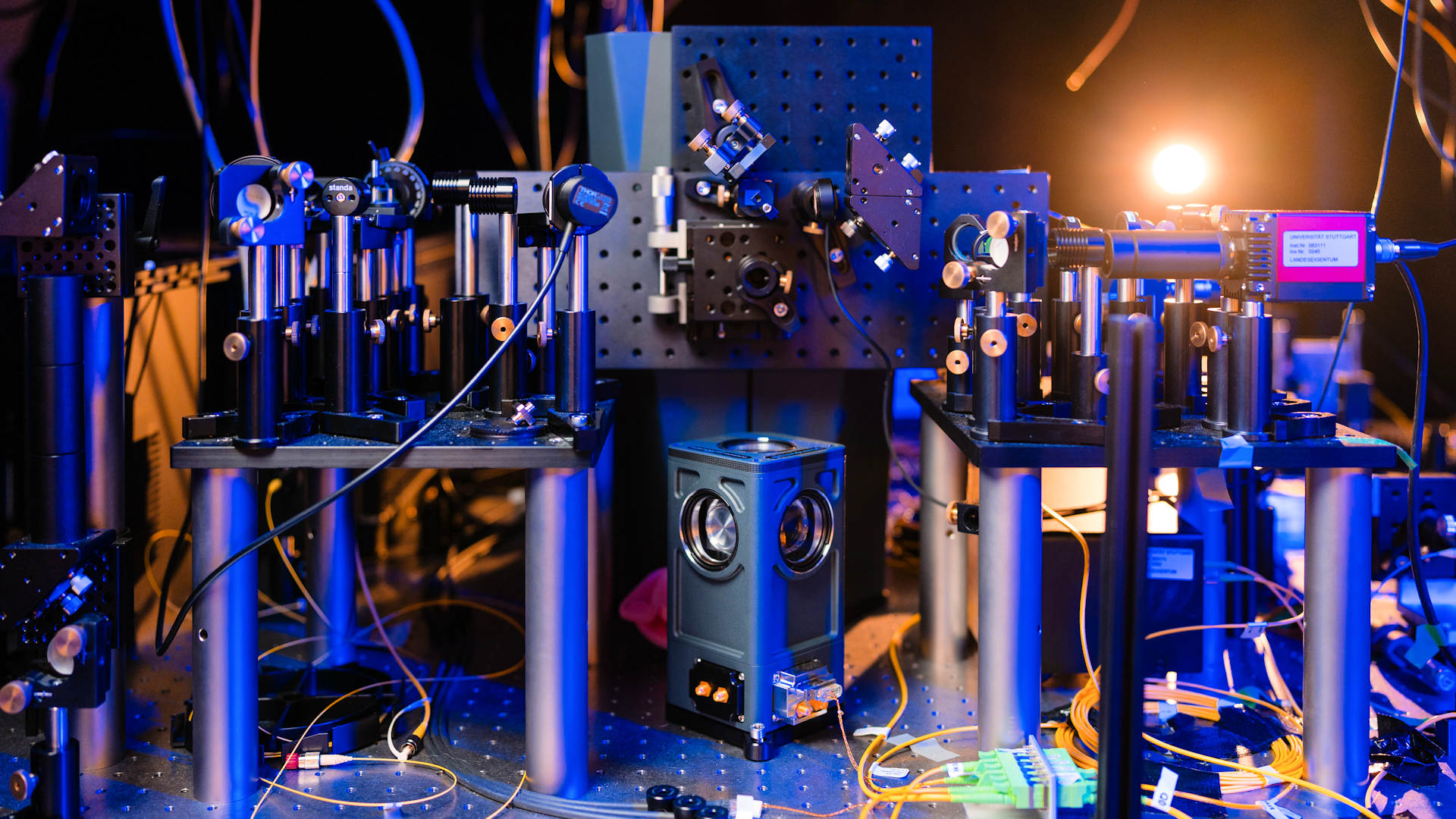 Hier im Quantenoptiklabor der Universität experimentieren Forschende mit neuen Photonenquellen für Quantencomputing und Quantennetzwerke. (Quelle: Ludmilla Parsyak/Barz Group/Universität Stuttgart)