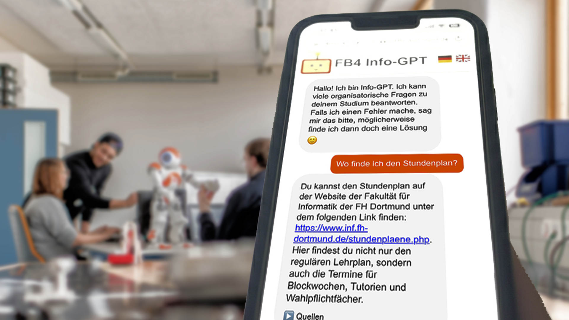 Mit Info-GPT auf dem Handy haben Informatik-Studierende der FH Dortmund noch mehr Orientierung im Studi-Alltag. (Montage: FH Dortmund)