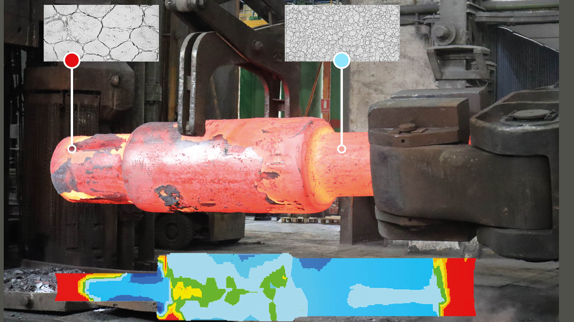 Die hohe Kunst der Schmiedetechnologie besteht darin, dieses komplexe Zusammenspiel von Physik, Chemie und Mechanik zu beherrschen. Wie lassen sich die Maschineneinstellungen an der riesigen Schmiedepresse mit der Entwicklung des mikroskopisch kleinen Materialgefüges verknüpfen?