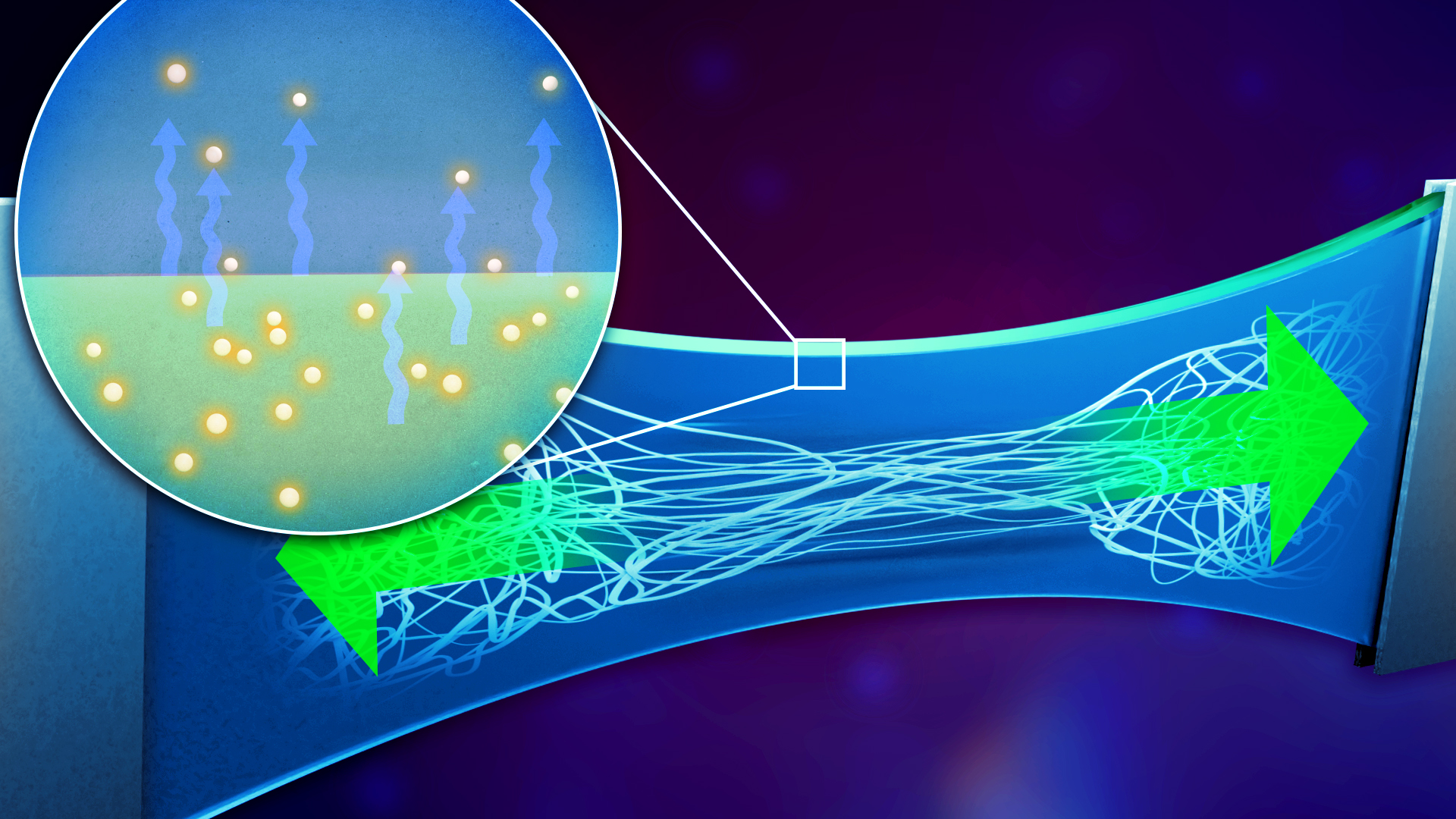 Gezielte Diffusion von Weichmachern aus dem Substrat in die leitfähige Schicht lässt sowohl die Leitfähigkeit als auch die Verformbarkeit von leitfähigen Polymeren deutlich verbessern. (Quelle: MPI-P)