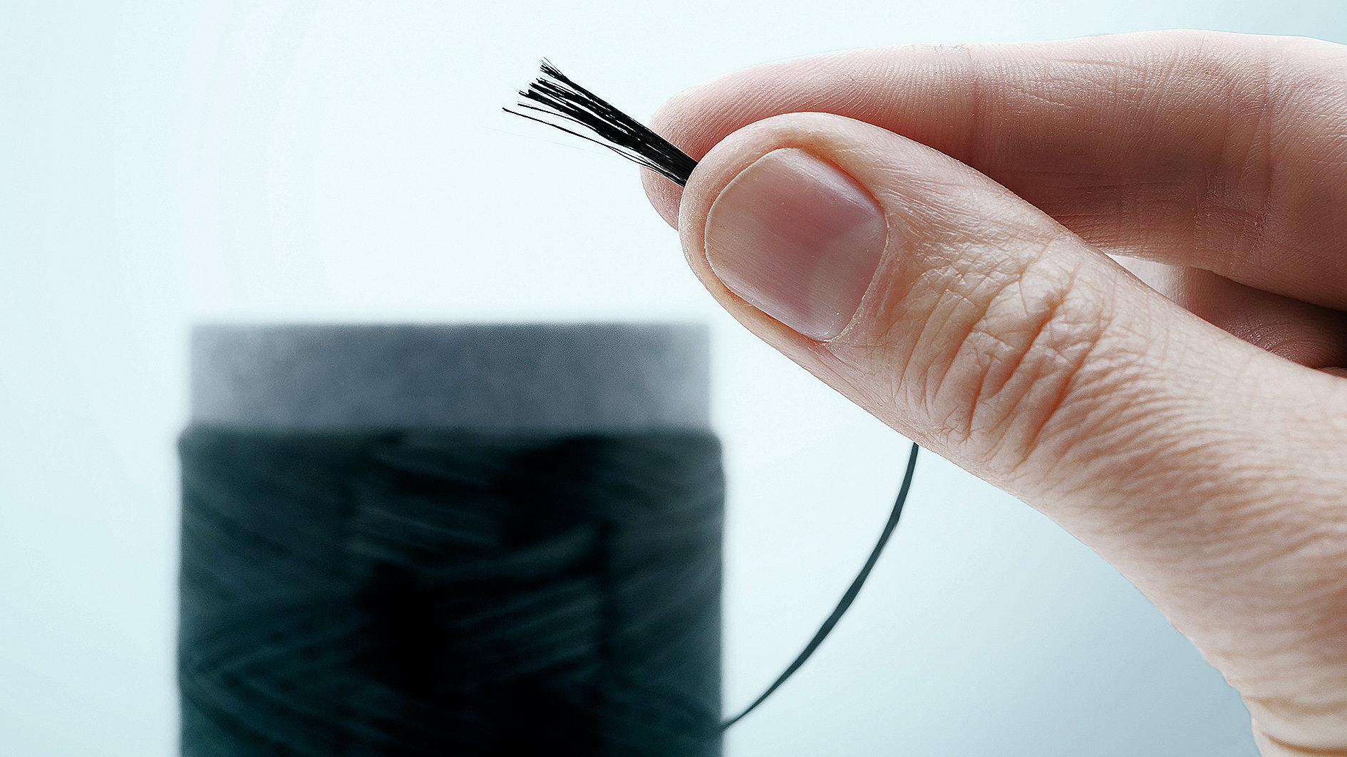 Hauchdünn und leistungsstark: Die biobasierten Carbonfasern des Fraunhofer IAP können Durchmesser von deutlich unter vier Mikrometern erreichen. Ihre mechanische, elektrische und thermische Performance entspricht dabei dem Niveau herkömmlicher erdölbasierter Carbonfasern. (Quelle: Fraunhofer IAP/Kristin Stein)