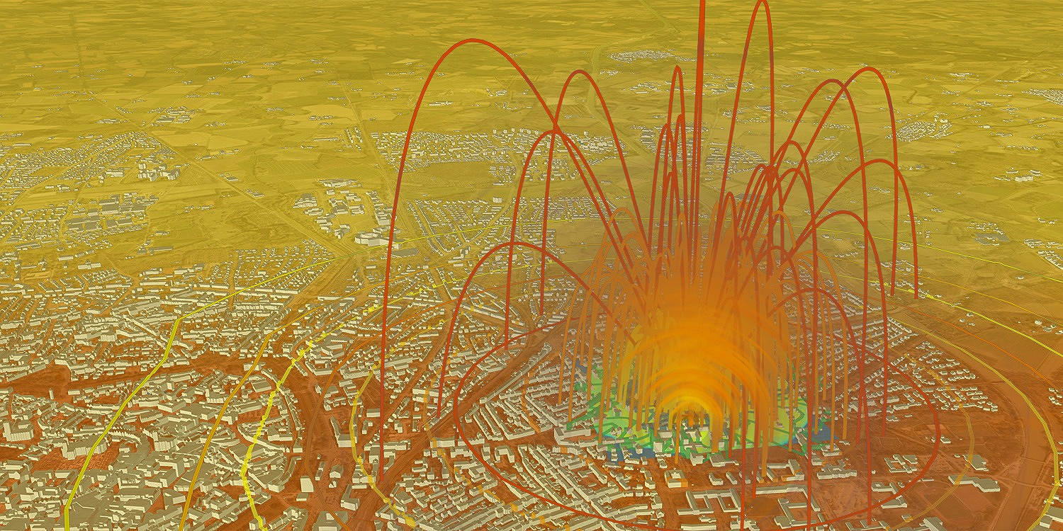 VC BlastProtect simuliert Detonationsszenarien in einem 3D-Stadtmodell. (Quelle: virtualcitysystems GmbH)