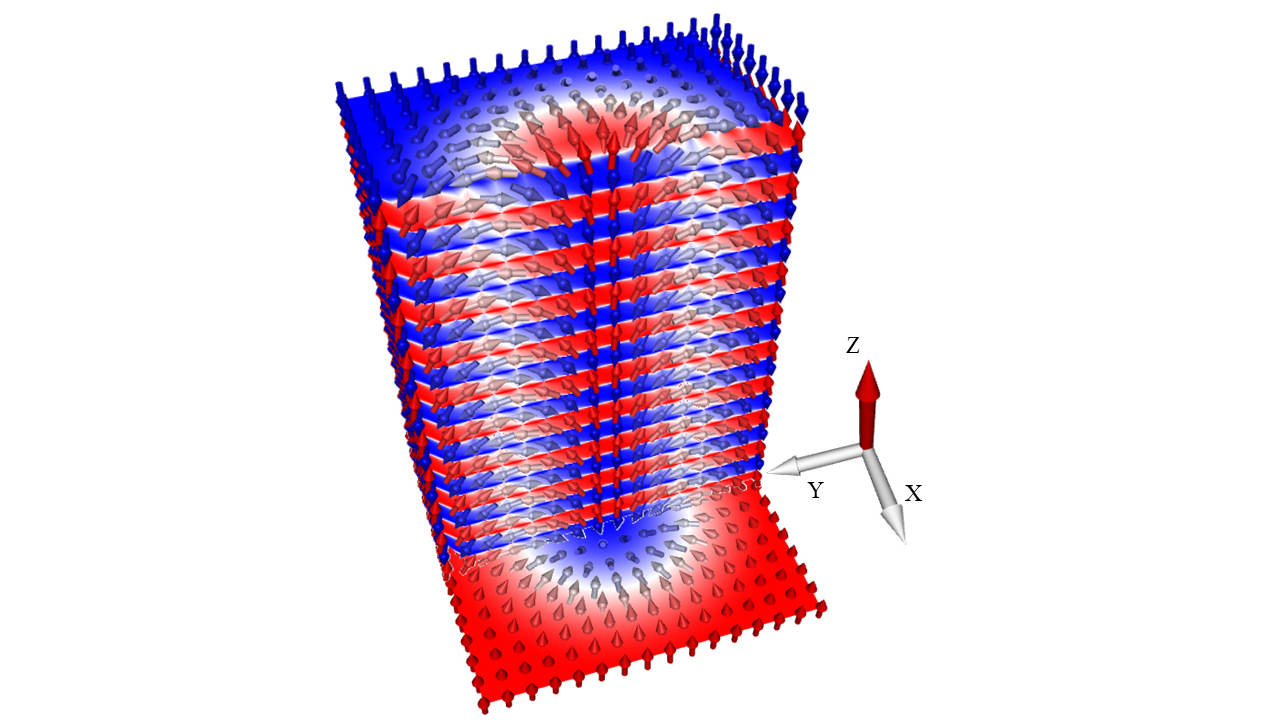Dreidimensionale magnetische Skyrmionenröhre in einem synthetischen Antiferromagneten (Quelle: Mona Bhukta/Uni Mainz)