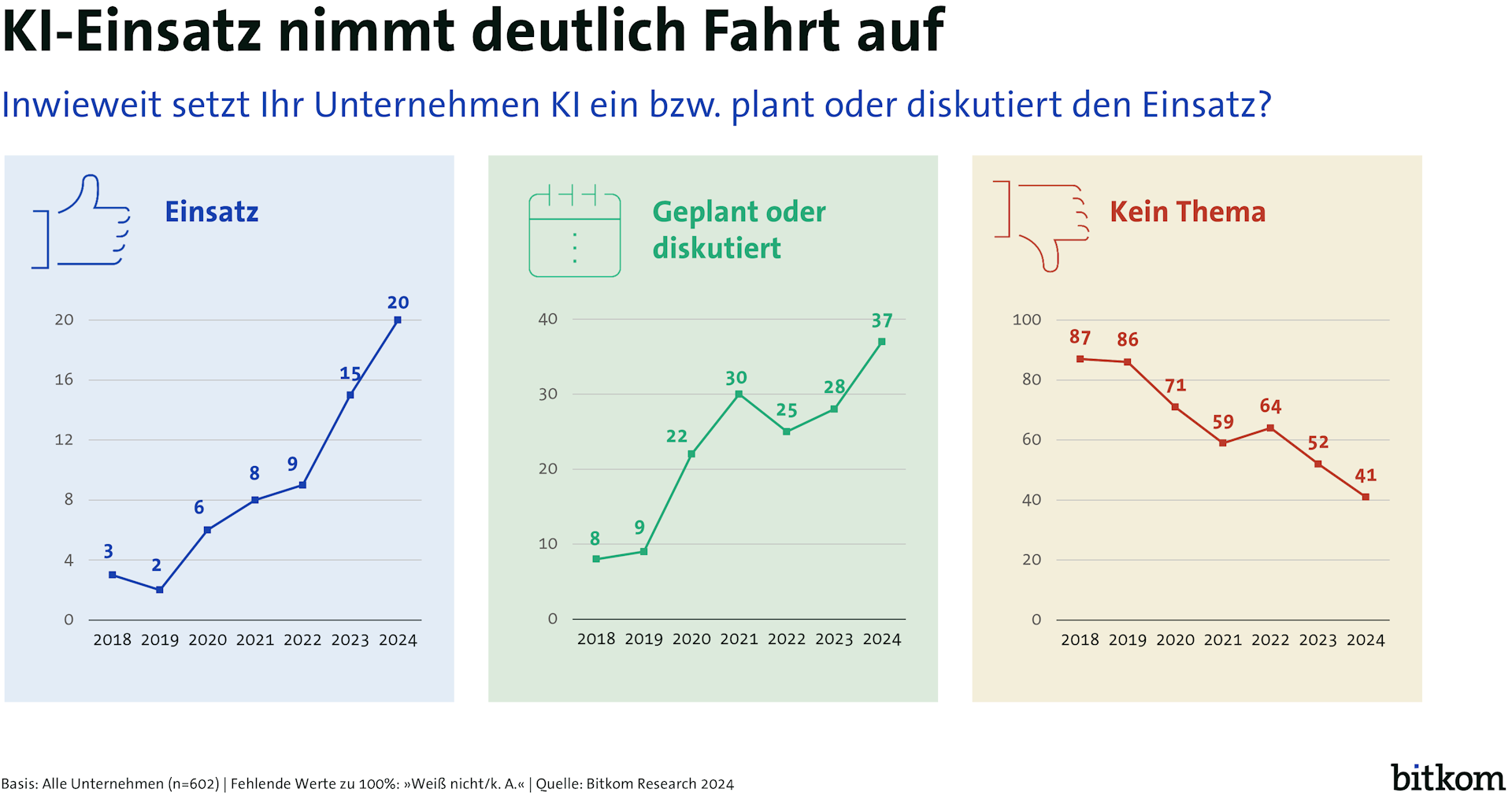 KI-Einsatz nimmt deutlich Fahrt auf. (Quelle. Bitkom)